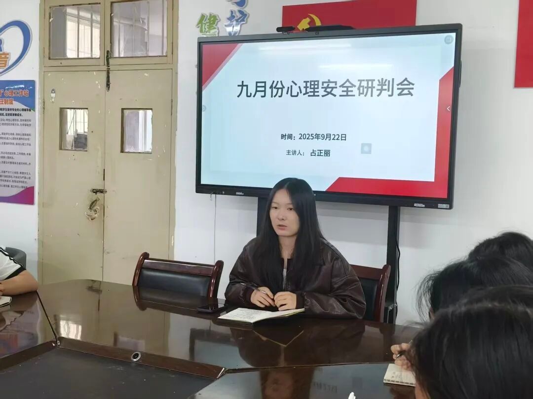 (通讯员 程雨彤)为全面分析学院当前安全形势,排查潜在风险隐患,9月22日中午,教师教育学院分团委书记占正丽在16栋2楼“逐梦空间”心理工作站召开了九月份心理安全研判会,各班班长、心理委员以及心健部全体成员参与会议。