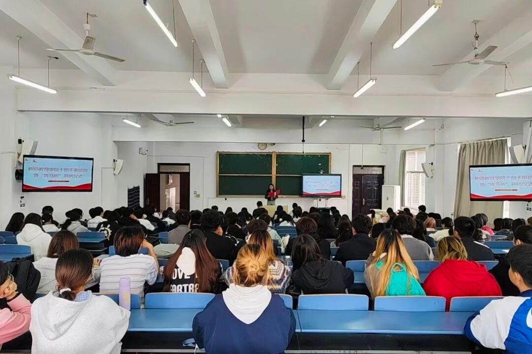 (通讯员 程雨彤)为深入学习贯彻习近平总书记关于青年工作的重要思想和关于教育的重要论述,扎实推动我院青年马克思主义者培养工程深入实施,提升学生干部干事政治素养,强化业务能力,教师教育学院于10月15日中午,在N8-A406教室举行教师教育学院2025-2026学年学生干部干事培训班暨“青马班”开班仪式。本次开班仪式由辅导员吴梦书主持,学院党委副书记张辉、学工办主任王许达、分团委书记占正丽以及教师教育学院全体学生干部干事和“青马班”学员共同参与本次开班仪式。