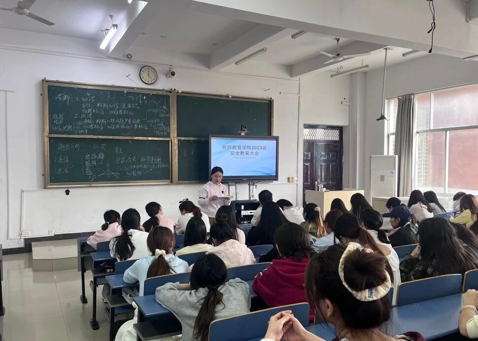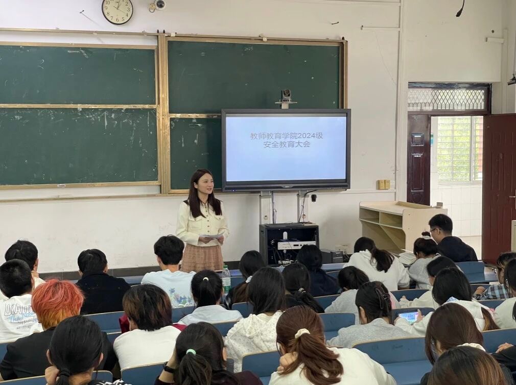 (通讯员 程雨彤)为切实增强学生安全意识,筑牢校园安全防线,2025年9月下旬,教师教育学院于N8-A406教室召开国庆中秋假期安全教育大会。学院2023级、2024级、2025级全体学生分别在辅导员占正丽、吴梦书、王许达的组织下参会。