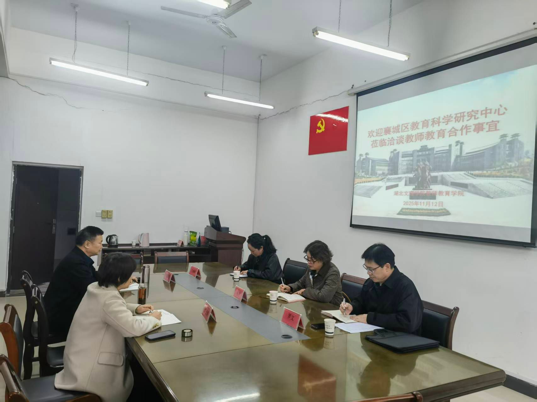 (教师教育学院 通讯员 张俊)2025年11月12日上午,襄阳市襄城区教育科学研究中心吴平主任一行三人来我院洽谈深度合作事宜。教师教育学院院长刘天娥、副院长熊德明出席了洽谈会。